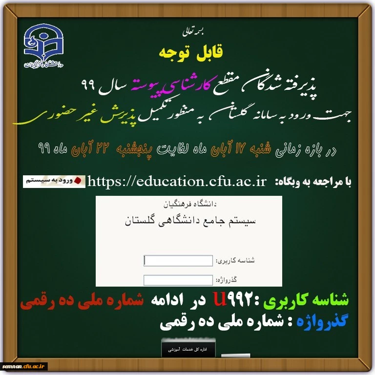 امتیاز دهید : ثبت نام غیر حضوری پذیرفته شدگان دانشگاه فرهنگیان ، پردیس الزهرا 3 جمعه 16 آبان 1399 ساعت 18:19
