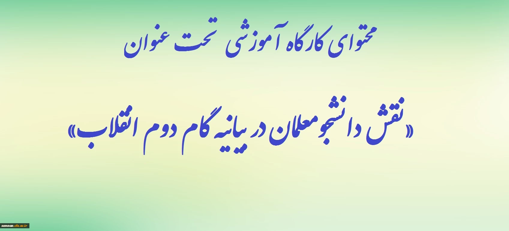 امتیاز دهید : محتوای کارگاه آموزشی تحت عنوان «نقش دانشجومعلمان در بیانیه گام دوم انقلاب» 2 شنبه 13 شهریور 1400 ساعت 13:37