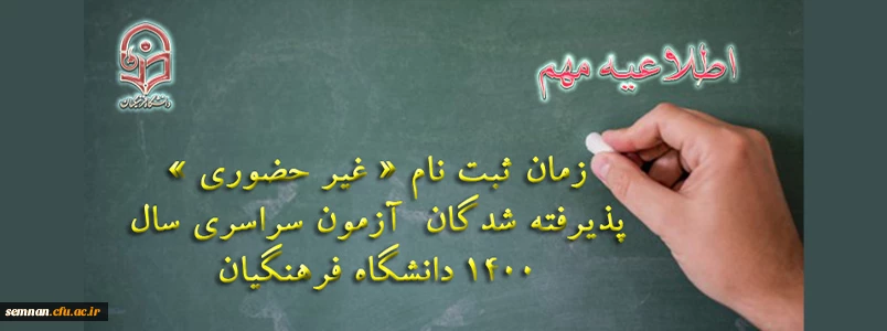 امتیاز دهید : زمان ثبت نام « غیر حضوری » پذیرفته شدگان آزمون سراسری سال 1400 2 سهشنبه 6 مهر 1400 ساعت 8:59