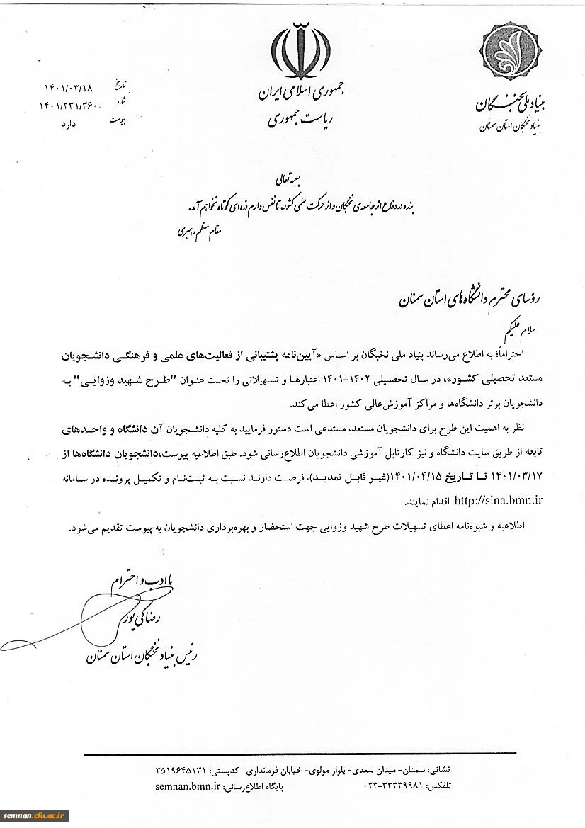 اطلاعیه طرح شهید وزوایی بنیاد ملی نخبگان 3
