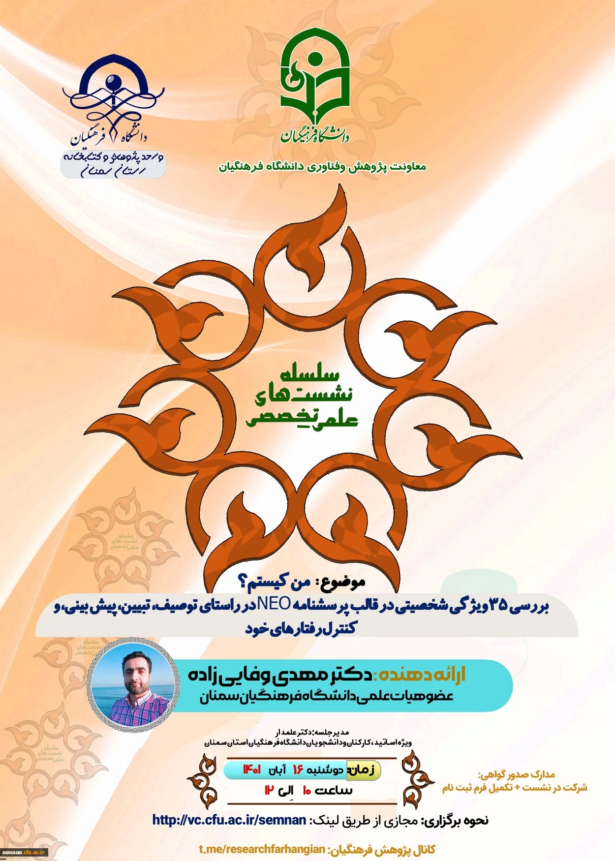 نشست علمی تخصصی: من کیستم؟ بررسی 35 ویژگی شخصیتی در قالب پرسشنامه NEO در راستای توصیف، تبیین، پیش بینی و کنترل رفتارهای خود 2