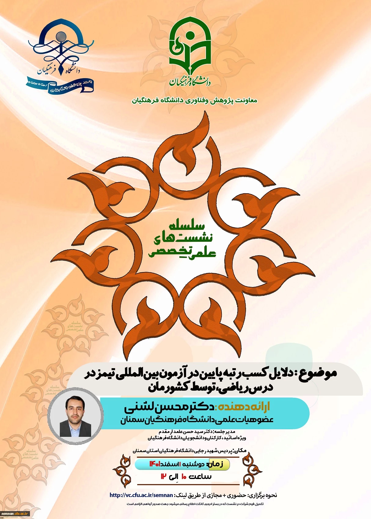 امتیاز دهید : دلایل کسب رتبه پایین در آزمون بین المللی تیمز در درس ریاضی توسط کشورمان 2 چهارشنبه 19 بهمن 1401 ساعت 8:14