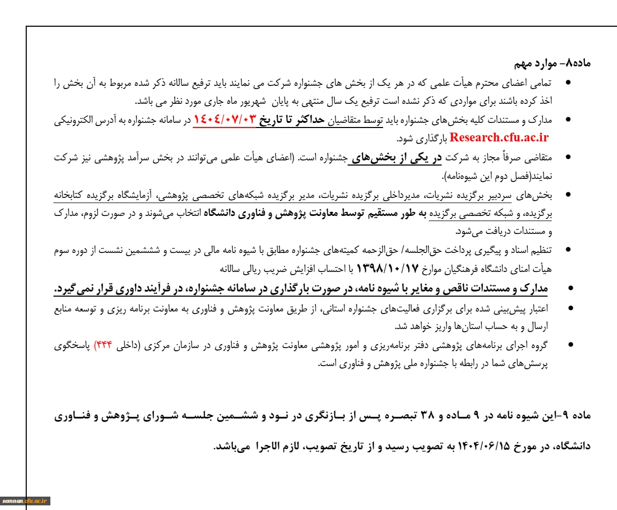 امتیاز دهید : فراخوان شرکت در چهاردهمین جشنواره ملی پژوهش و فناوری دانشگاه فرهنگیان 3 چهارشنبه 26 شهریور 1404 ساعت 11:04